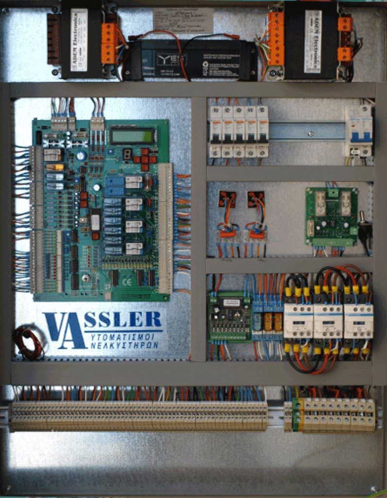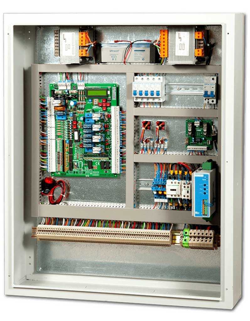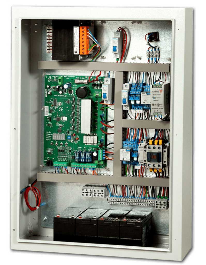 Κύκλωμα Ασφαλείας 110V AC. Συσσωρευτές 4 επαναφορτιζόμενες μπαταρίες μολύβδου 12V 7,2Ah. - Προστασία Από διακόπτες κυκλώματος, υπερτάσεις, υπερεντάσεις και ολική αστοχία λειτουργίας των μπαταριών.